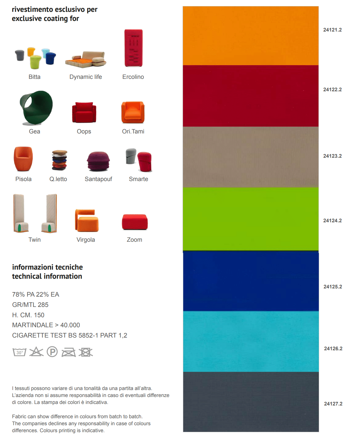 INDICARE IN FASE D’ODINE IL CODICE E COLORE DEL TESSUTO DESIDERATO.