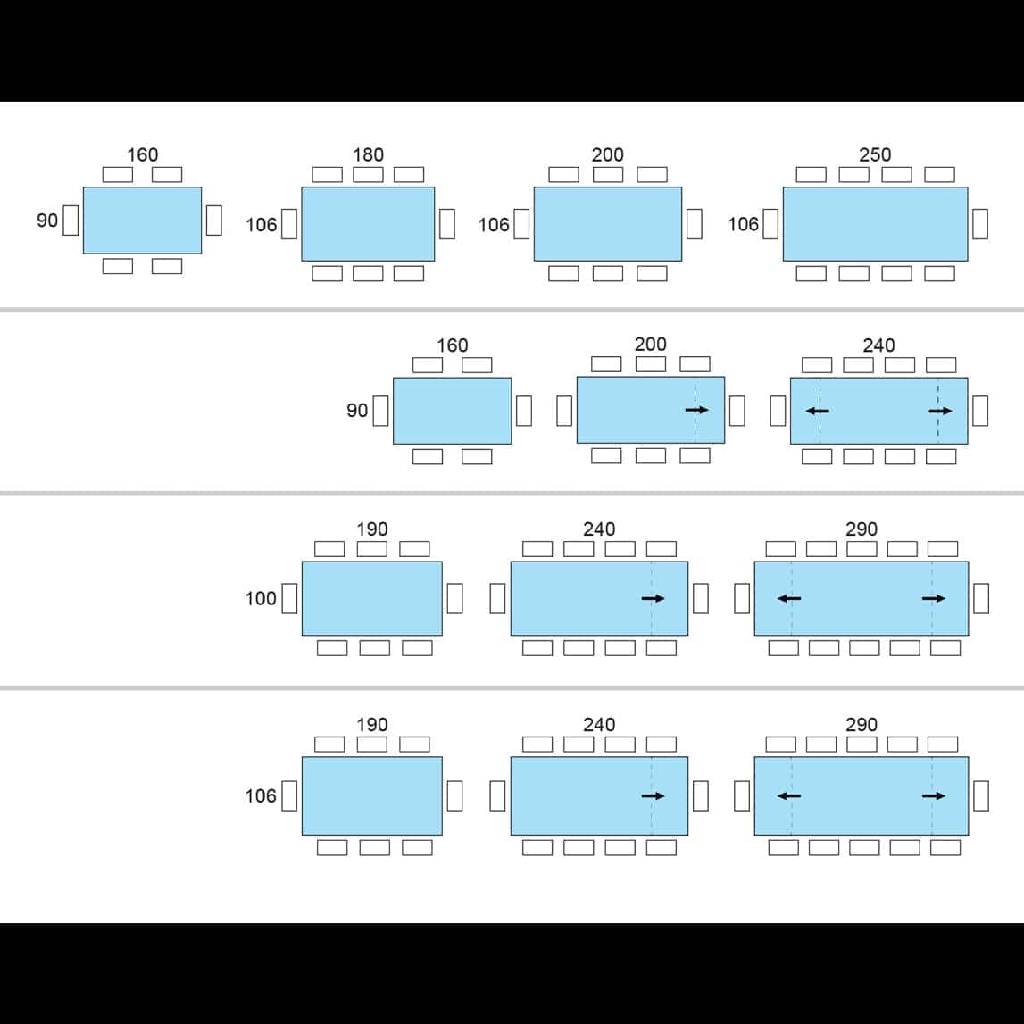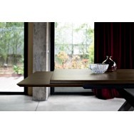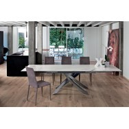 Tavolo fisso e allungabile con struttura in acciaio laccato. Piano in legno massello, legno massello secolare, legno massellato, legno impiallacciato, legno laccato, cristallo, cristallo antigraffio, SuperCeramica, SuperCemento e SuperMarmo.