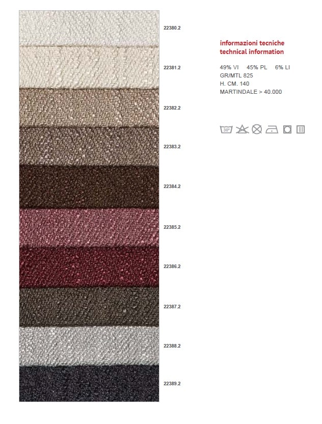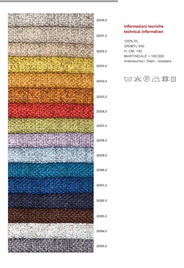 SPECIFICARE IN FASE D’ORDINE IL CODICE TESSUTO CAT. 2 SCELTO: