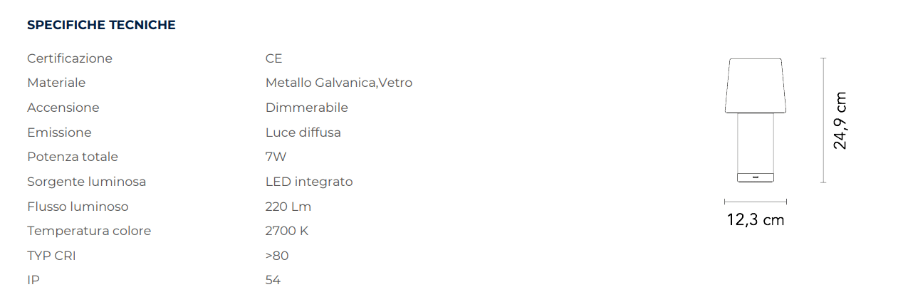 FontanaArte serigrafato. Fonte luminosa LED integrato e dimmerabile. Un pulsante
