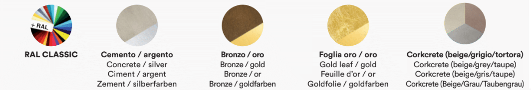 Cemento/interno argento, Bronzo/oro , foglia oro/oro, Corkcrete – Lampadine non incluse.