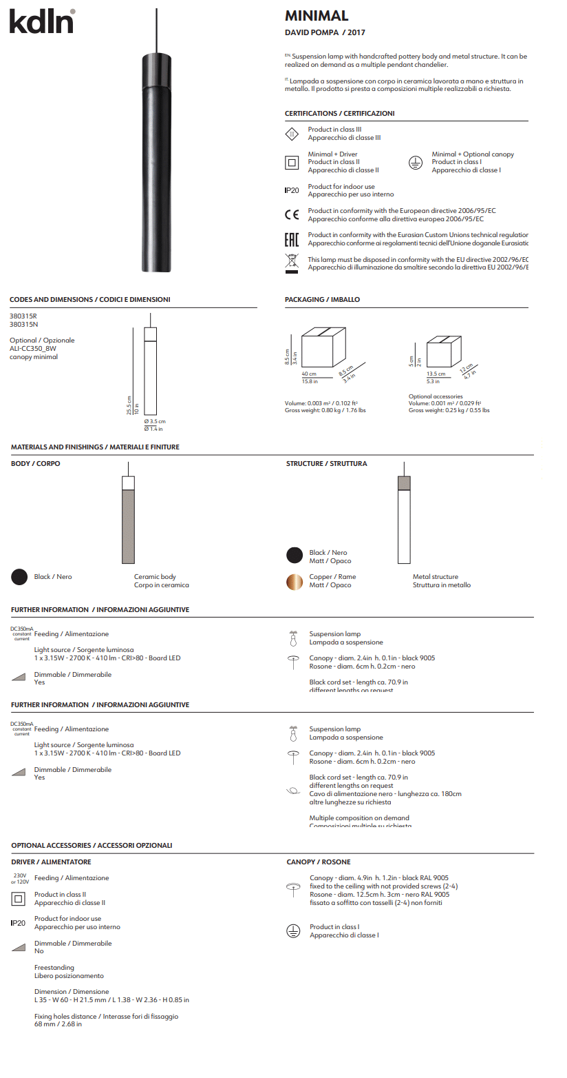 MINIMAL – Lampada sospensione – KUNDALINI SRL