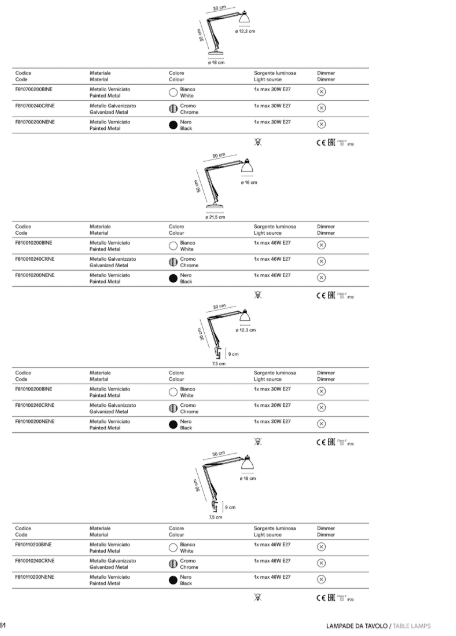 La lampada per tavolo NASKA è realizzata con braccio orientabile in tutte le direzioni in versione con base classica da appoggiare sul piano, o in versione morsetto per poterla fissare dove si preferisce.