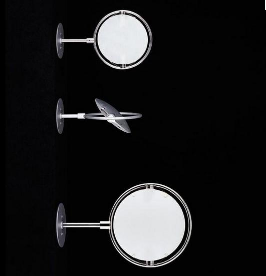 Nobi si presenta come una lampada da parete. Montatura in metallo bianco opaco, cromato, verniciato grigio alluminio oppure nichelato satinato. Diffusore in vetro satinato. E’ previsto un riflettore in alluminio anodizzato per luce indiretta e un distanziatore per connessioni elettriche.