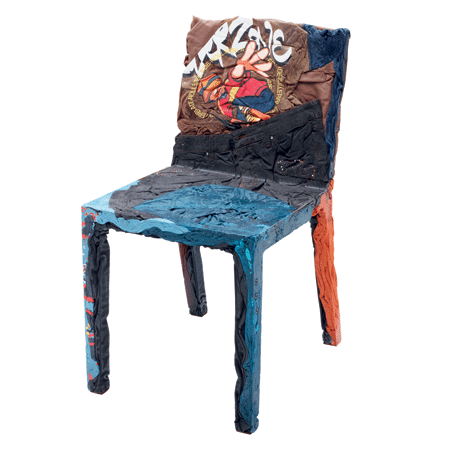 La sedia affronta le nostre attuali problematiche sociali di sostenibilità e riciclaggio, ricavando il materiale per la realizzazione della struttura con l’utilizzo di vecchi indumenti come jeans, magliette che potrai fornire direttamente tu, dando agli stessi una nuova “seconda vita” sotto forma di arredo.