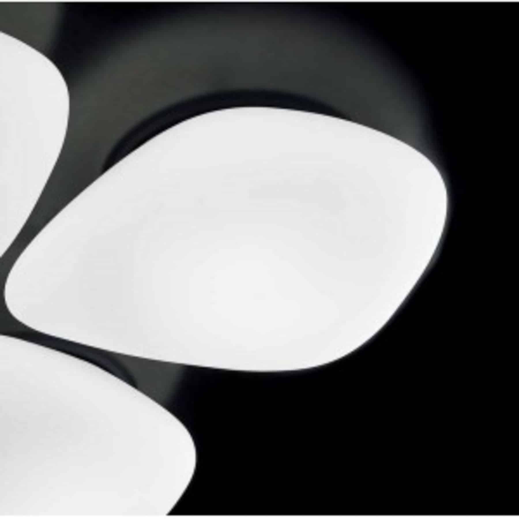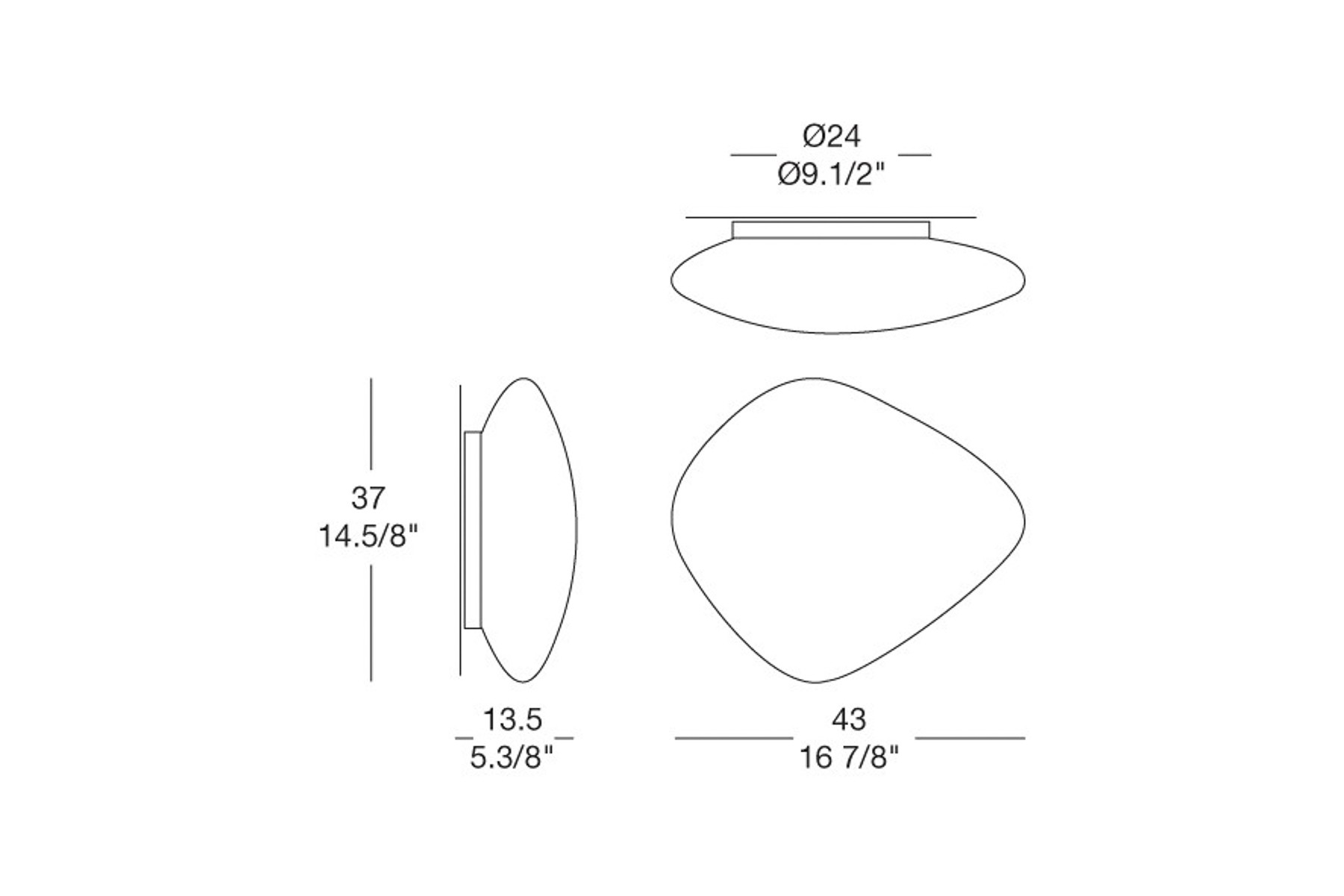 Lampada da parete/soffitto a luce diffusa. Paralume diffusore in Vetro soffiato, incamiciato colore biancolatte. Finitura satinata.