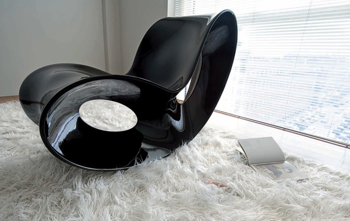 Dato il materiale utilizzato per la sua costruzione, la poltrona a dondolo è adatta sia ad ambienti interni che esterni, così da potersi godere dondolando una bellissima serata estiva sotto le stelle. Magis realizza anche una versione esclusivamente per ambienti interni, realizzata con una speciale vernice lucida di colore nero non adatta agli ambienti esterni.